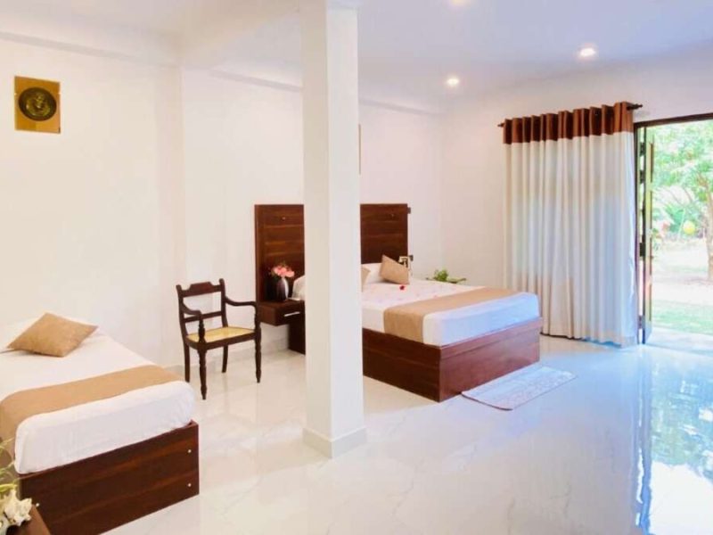 Elegant Accommodation: Golden Gate Ceylon in Anuradhapura offers a 5-star hotel experience with a beautiful garden and an on-site restaurant. Family rooms and an outdoor play area cater to all guests.